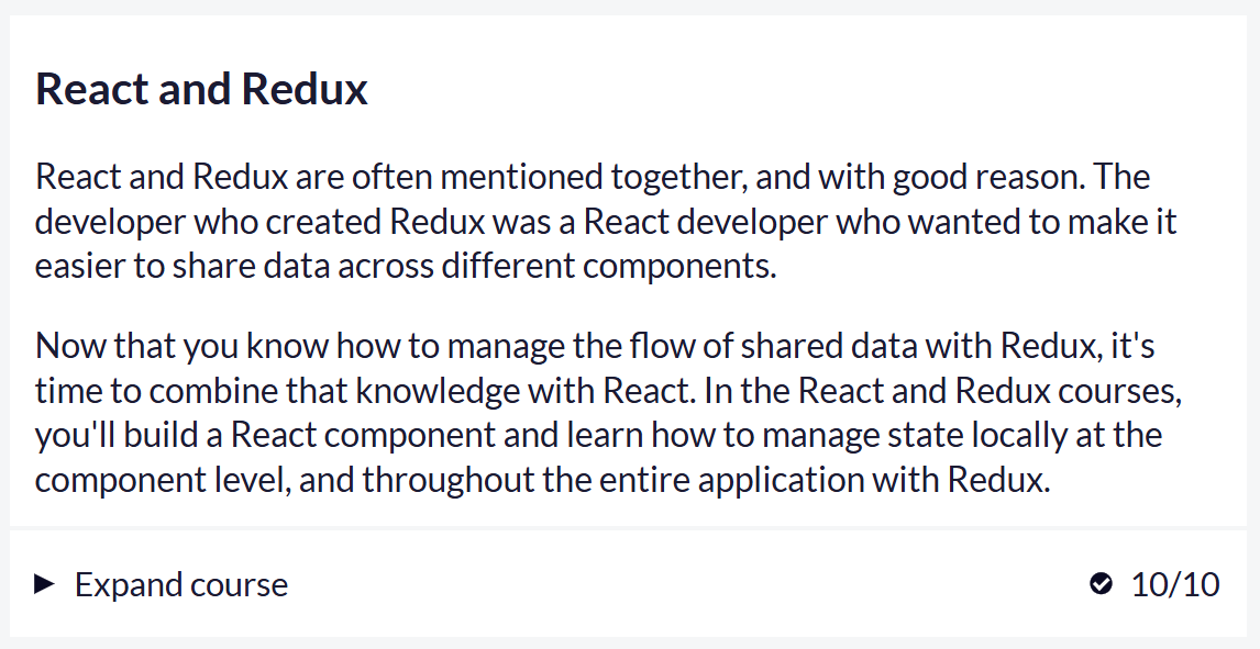 however, as someone who has never used react nor redux in a project before, i was quite confused trying to follow the tutorial and almost all the code i ended up uploading to my personal freecodecamp learning github repo were the solutions to each lesson of the course