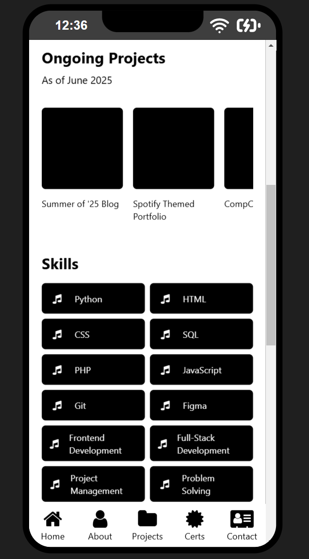 more on the spotify themed portfolio