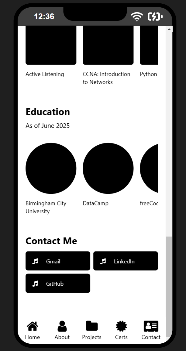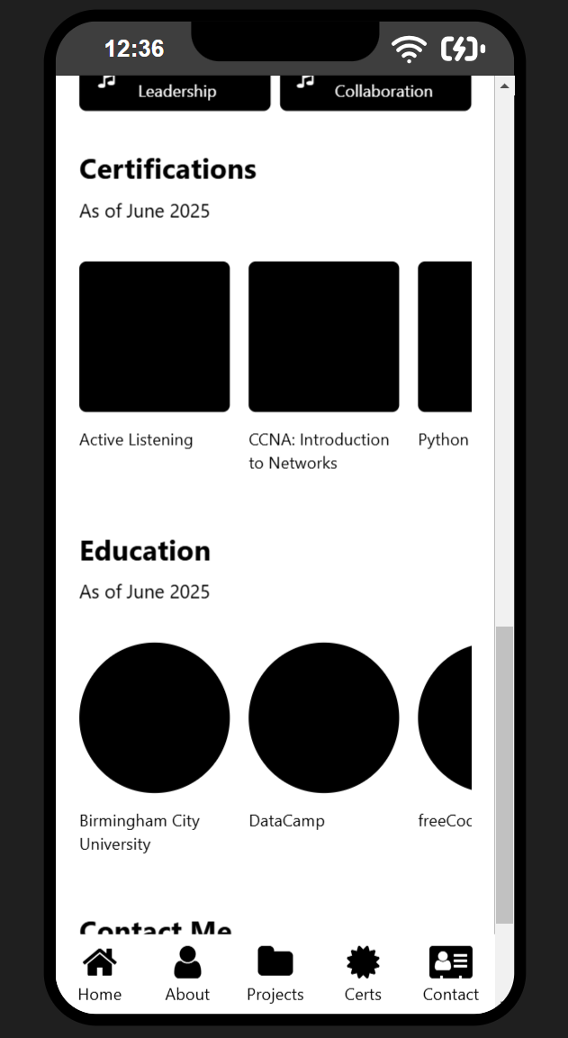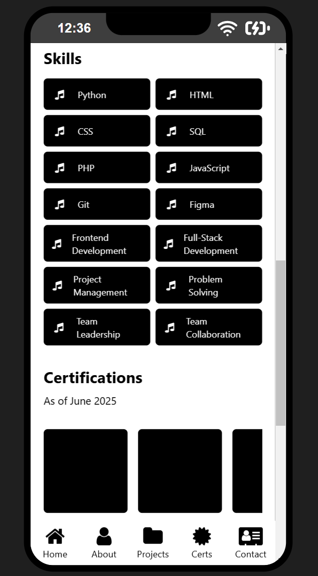 regarding code, i finished getting all elements down for the mobile index page, and started drafting the elements for the mobile certifications page. here is the progress so far: