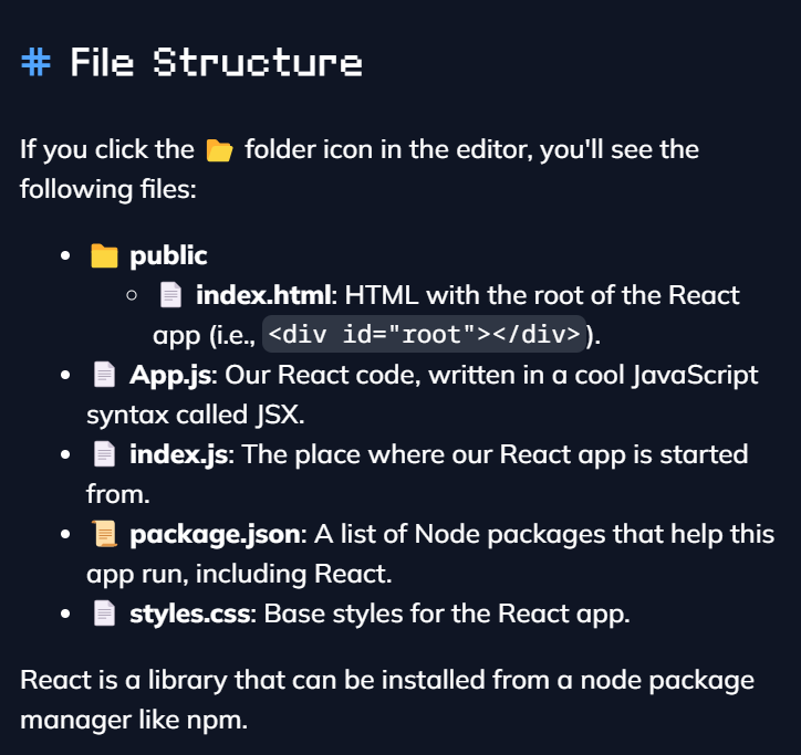 finally found a learning resource that explains react folder structure!! (freecodecamp helped me learn the basics on how to use react but left me confused still)